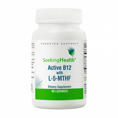 Active B12 with L-5-MTHF Lozenges by Seeking Health provide 800 mcg of pure non-racemic L-methylfolate in an easy-to deliver lozenge, along with two active “coenzyme” forms of vitamin B12. As “coenzyme” forms, methylcobalamin and adenosylcobalamin are the forms required by certain B12-dependent enzymes and reactions within the body. Similarly, L-5-methyltetrahydrofolate is considered an “active” form of folate – the body’s most prevalent form of folate in plasma.*