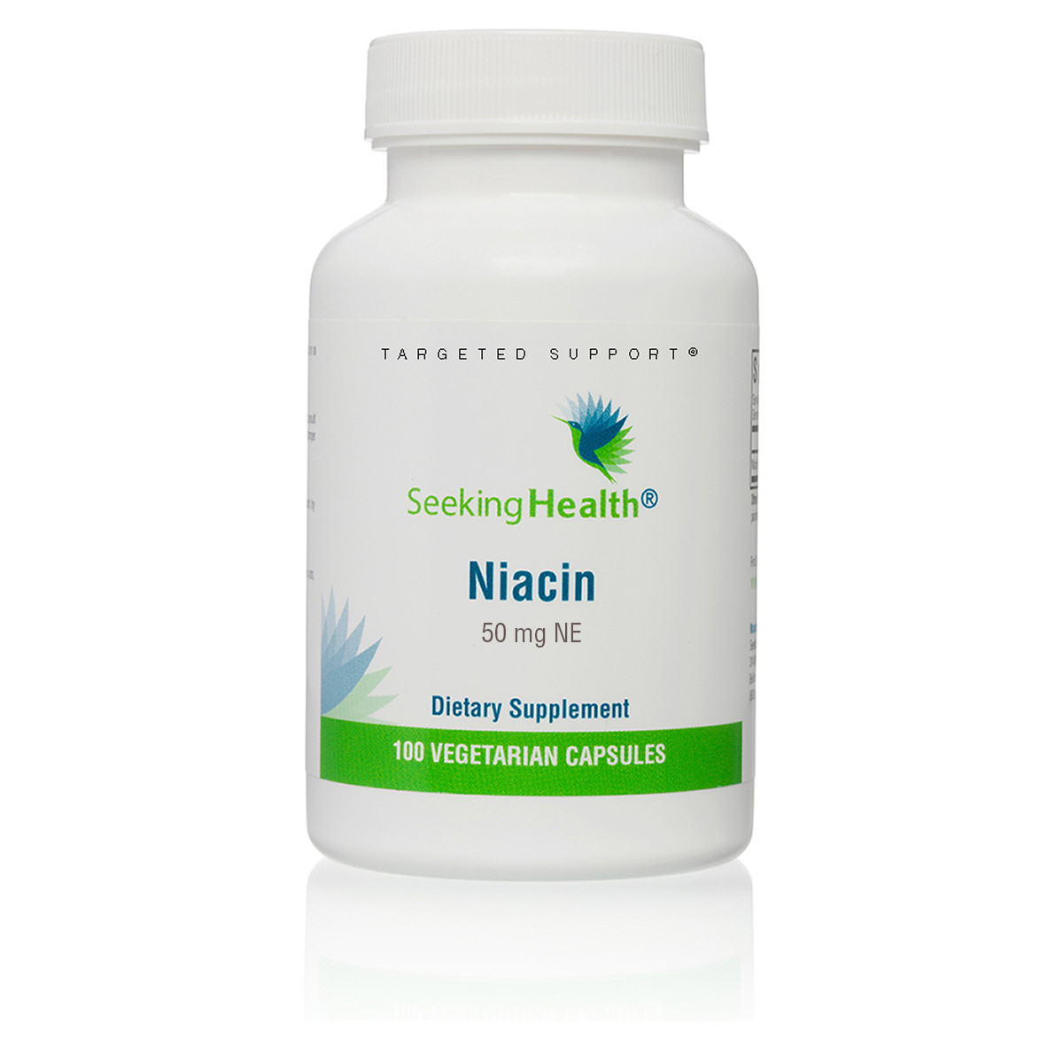 Niacin Capsules by Seeking Health provide 50 mg of niacin, also known as vitamin B3, a nutrient that is naturally produced in the body and is found in many of the foods we eat. Niacin may help support healthy circulation, healthy carbohydrate and fat metabolism, and healthy skin. Because the body cannot store niacin, it requires adequate intake of this important vitamin everyday.*