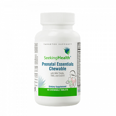 Prenatal Essentials Chewable offers a specialized prenatal formula designed to help meet the high nutritional needs of women who are pregnant or preparing for pregnancy, or anyone looking for a well-rounded multivitamin in an easy chewable format. This formula contains both folinic acid and L-5-MTHF, the most biologically available forms of folate, which are essential during pregnancy to support healthy brain development. L-5-MTHF works in conjunction with chelated minerals and coenzyme forms of B vitamins to support cardiovascular, neurologic, and immune health and normal cell growth. This formula is iron-free for maximal versatility.
